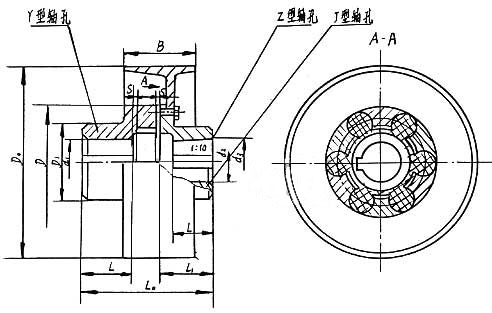 MLL-I(LMZ-I)型分体式制动轮梅花形弹性联轴器的参数及主要尺寸:(GB/T 5272-85) mm
