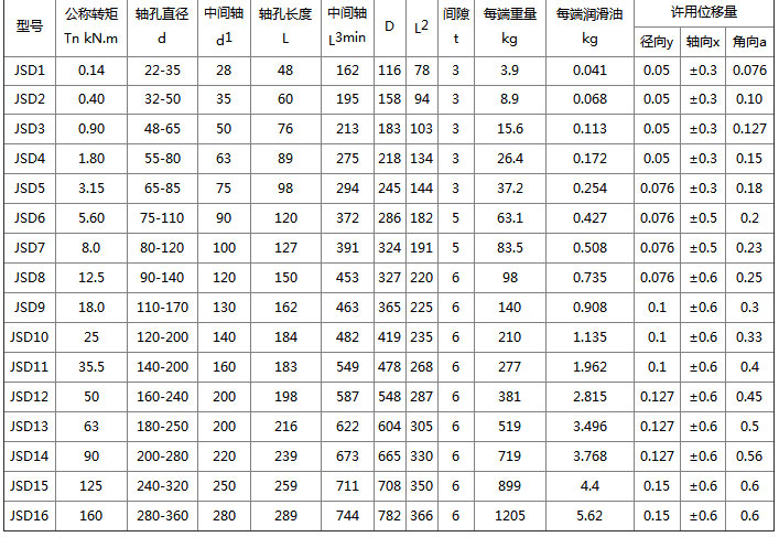 JSD型蛇型弹簧联轴器的参数及主要尺寸:(JB/T 8869-2000)mm