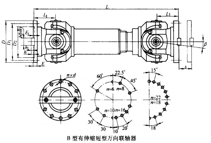 SWP-B型万向联轴器 特点及应用场合:轴承是易损件.为便于更换轴承,将轴承座压盖作成剖分式,螺栓联接,可在β≤5°~10°工况下工作。适用于轧钢机械、起重运输机械、工程机械、矿山机械、石油机械及其他重型机械,联接两个不同轴线的轴系传动,不能缓冲、减振。